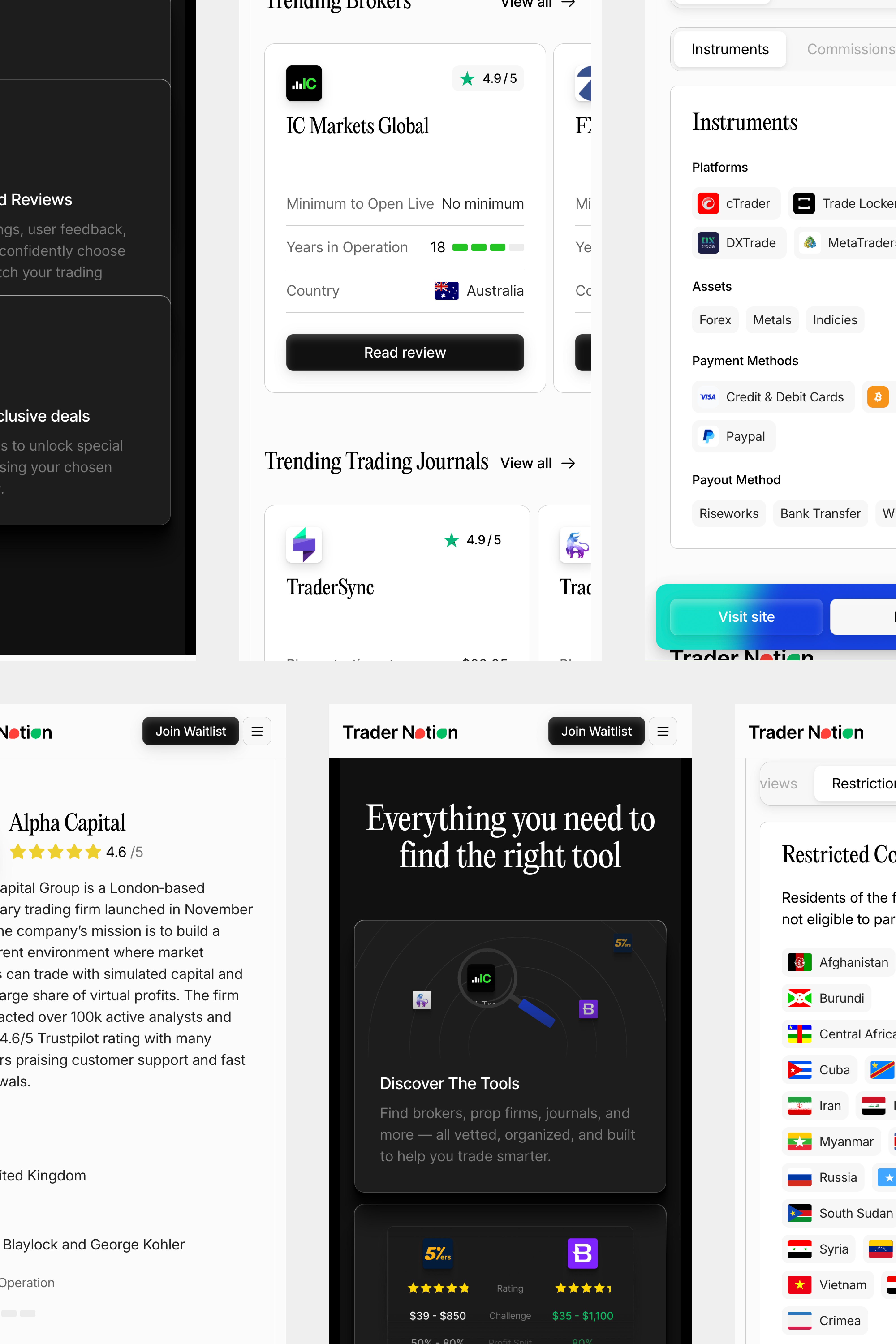 We designed a clean interface that makes it easy to browse and compare options quickly. Clear typography, structured layouts, and strategic use of color guide users through the experience without distraction. The Webflow build was optimized for speed and growth. We set up a flexible CMS so the TraderNotion team can easily manage and expand their database as they add more tools and content.